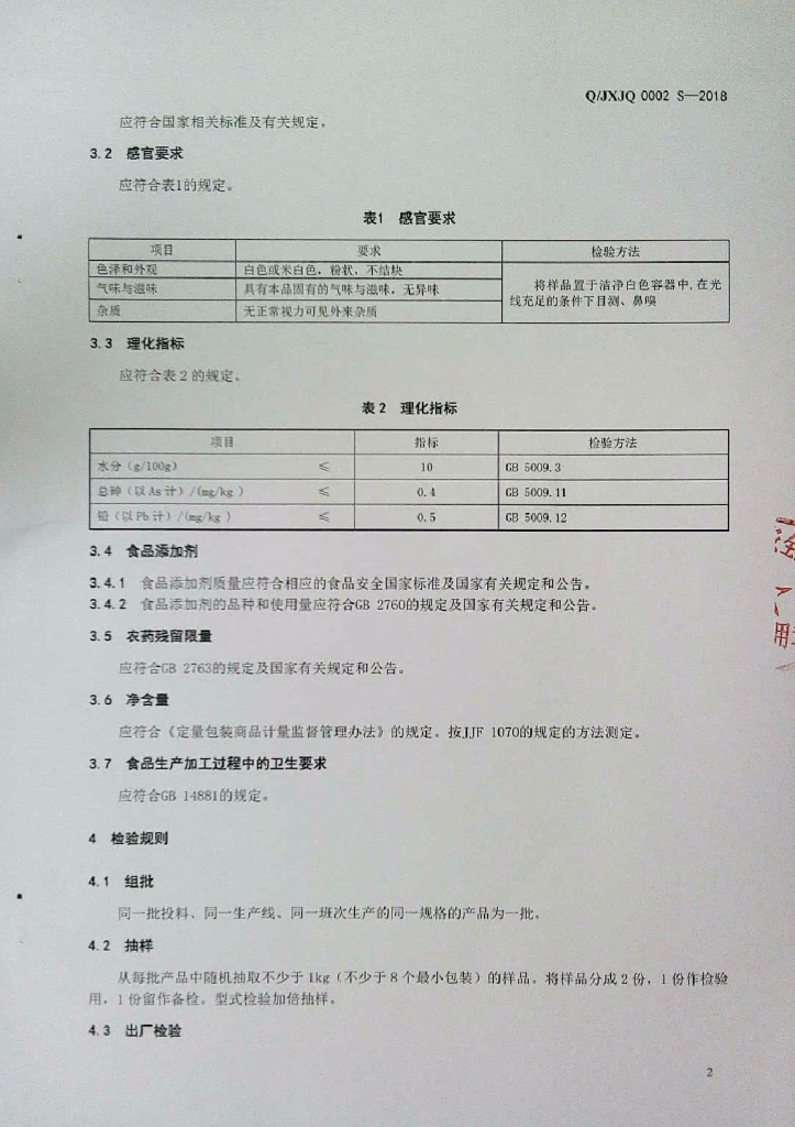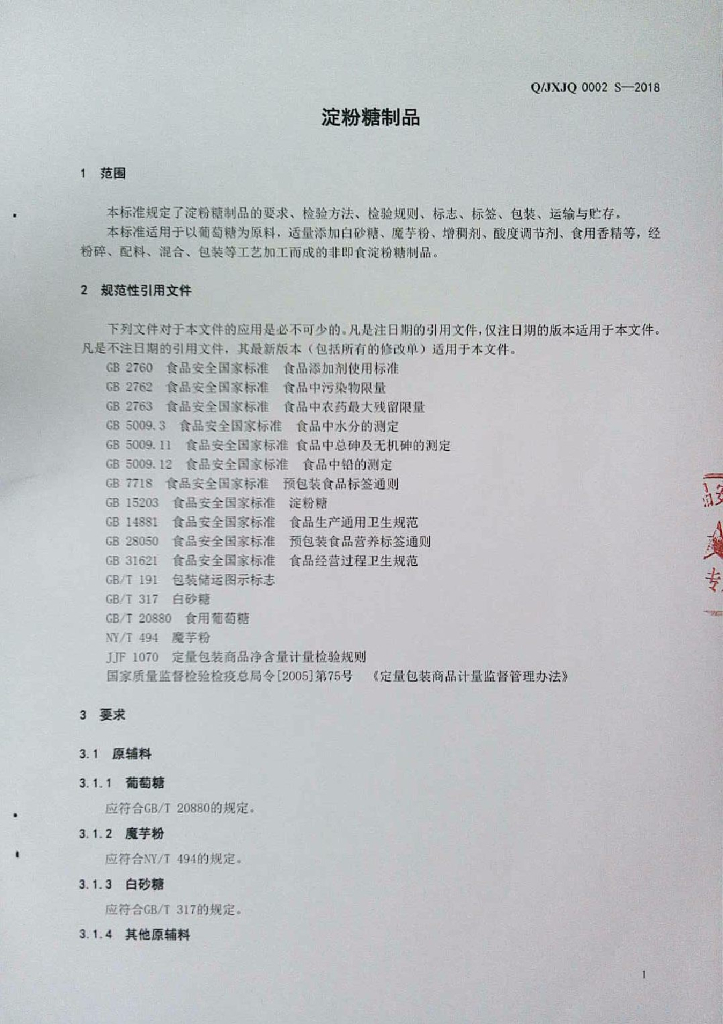 Q/JXJQ 0002S-2018 淀粉糖制品
