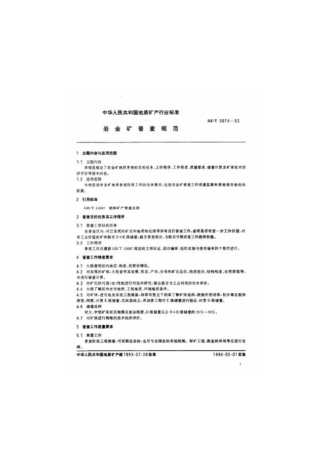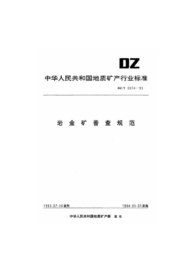 DZ/T 74-1993 岩金矿普查规范