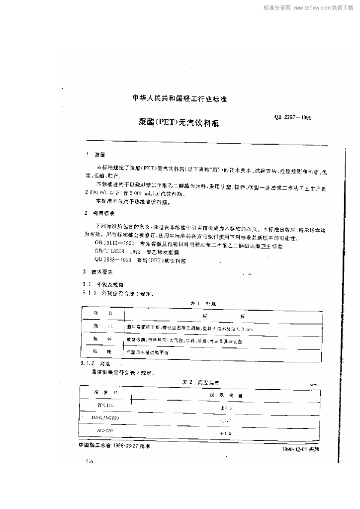 QB 2357-1998 聚酯(PET)无汽饮料瓶