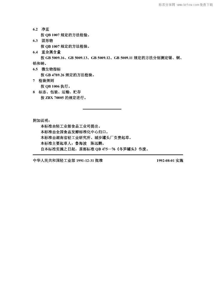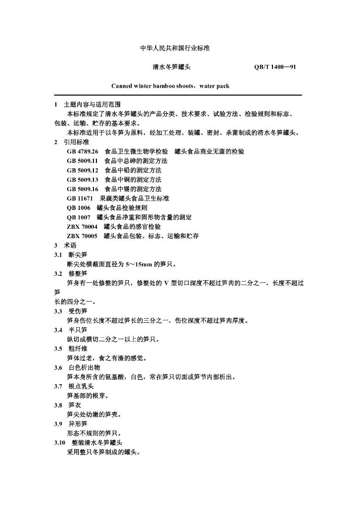 QB/T 1408-1991 清水冬笋罐头