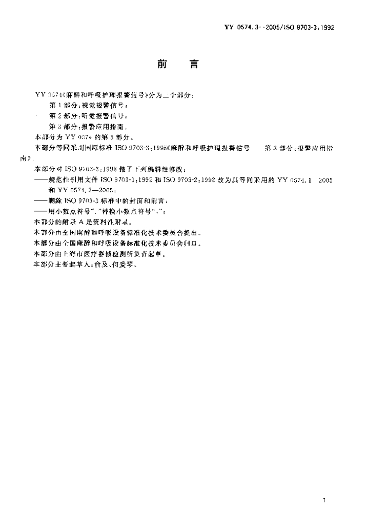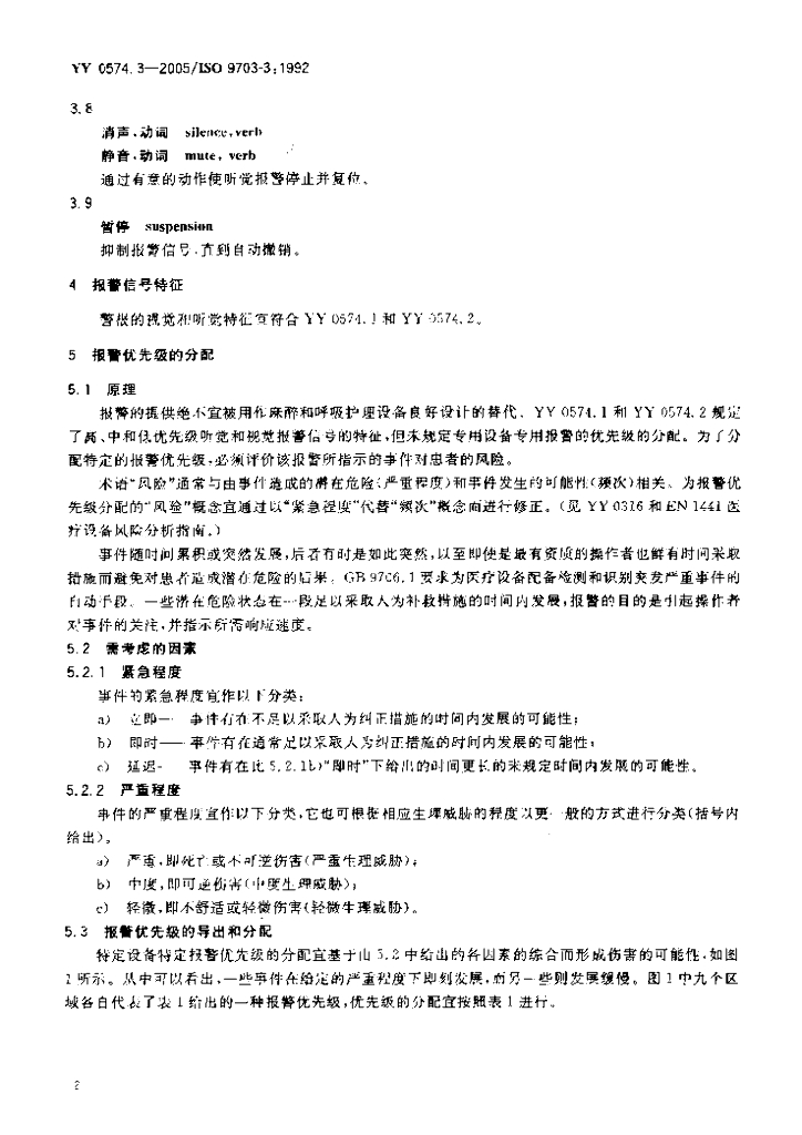 YY 0574.3-2005 麻醉和呼吸护理报警信号 第3部分 报警应用指南