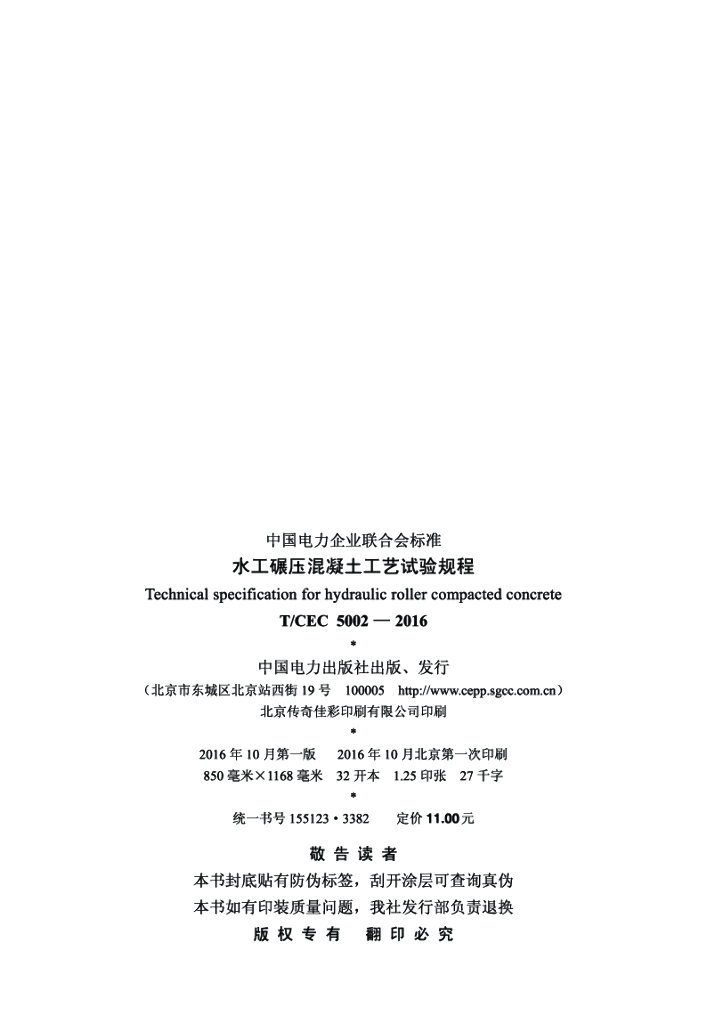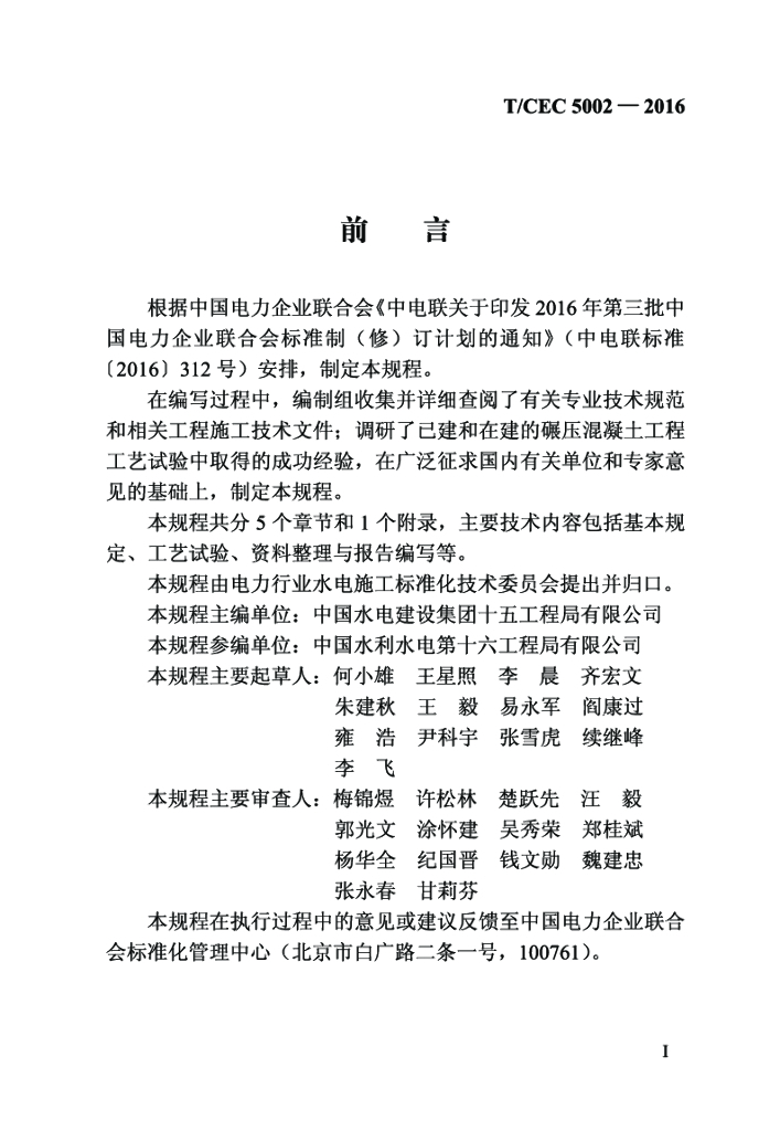 T/CEC 5002-2016 水工碾压混凝土工艺试验规程