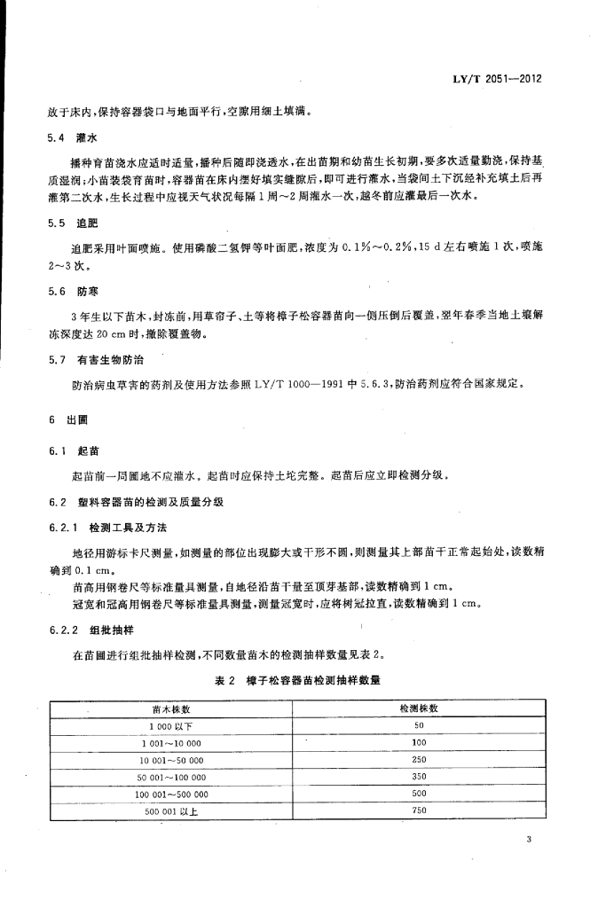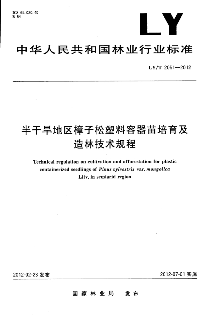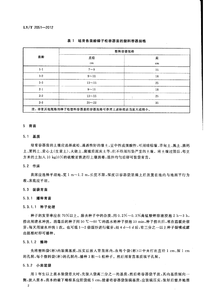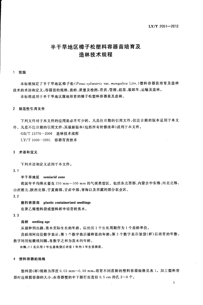 LY/T 2051-2012 半干旱地区樟子松塑料容器苗培育及造林技术规程