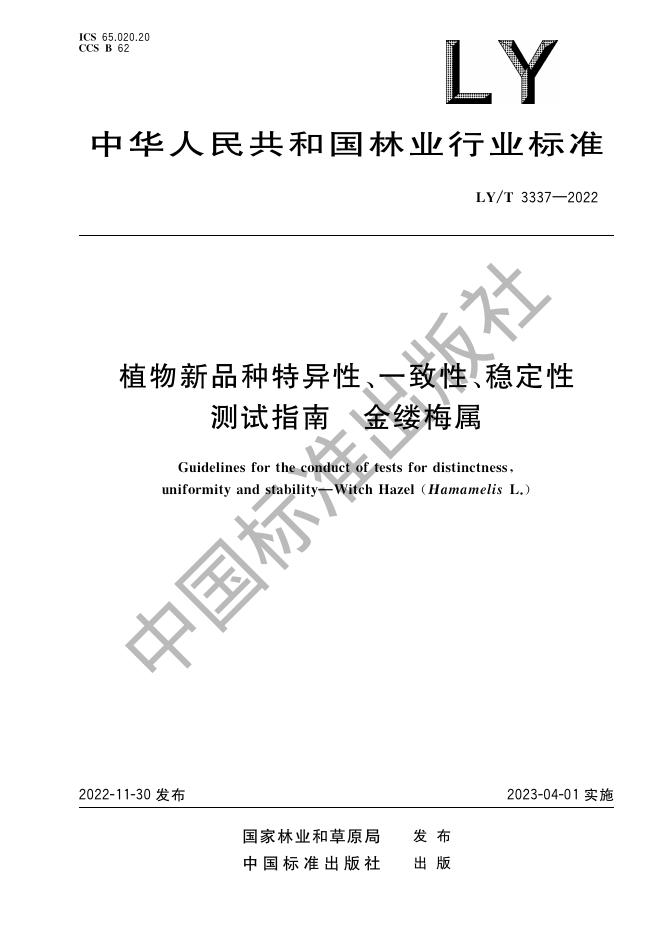 LY/T 3337-2022 植物新品种特异性、一致性、稳定性测试指南 金缕梅属