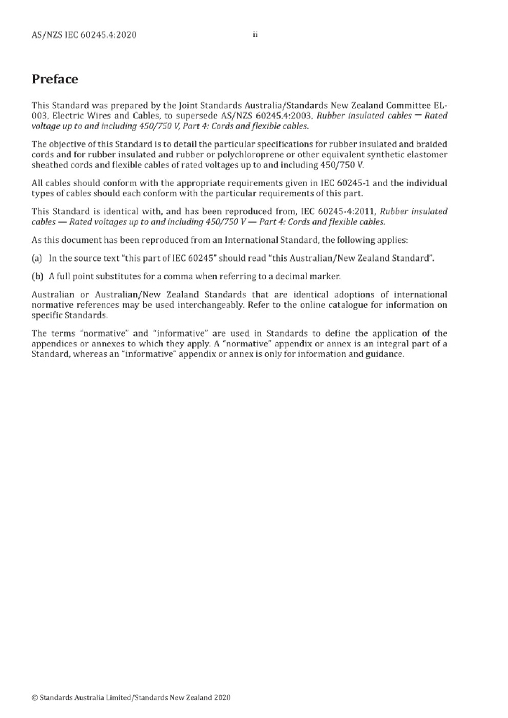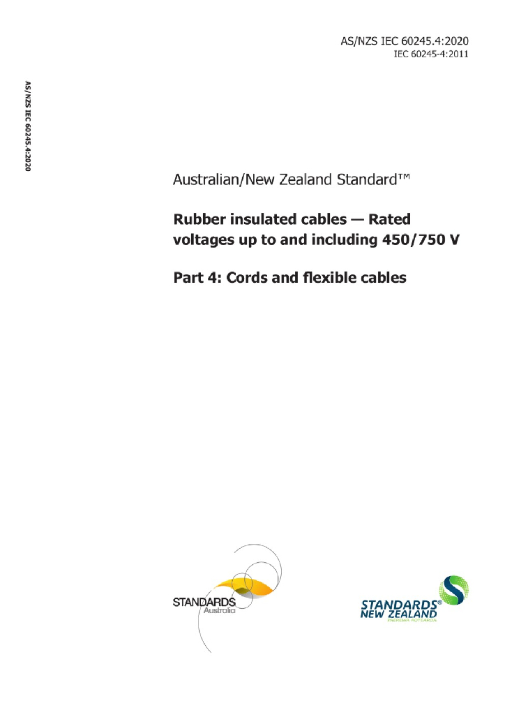 AS/NZS IEC 60245.4:2020 额定电压450/750V及以下橡皮绝缘电缆 第4部分 软线和软电缆