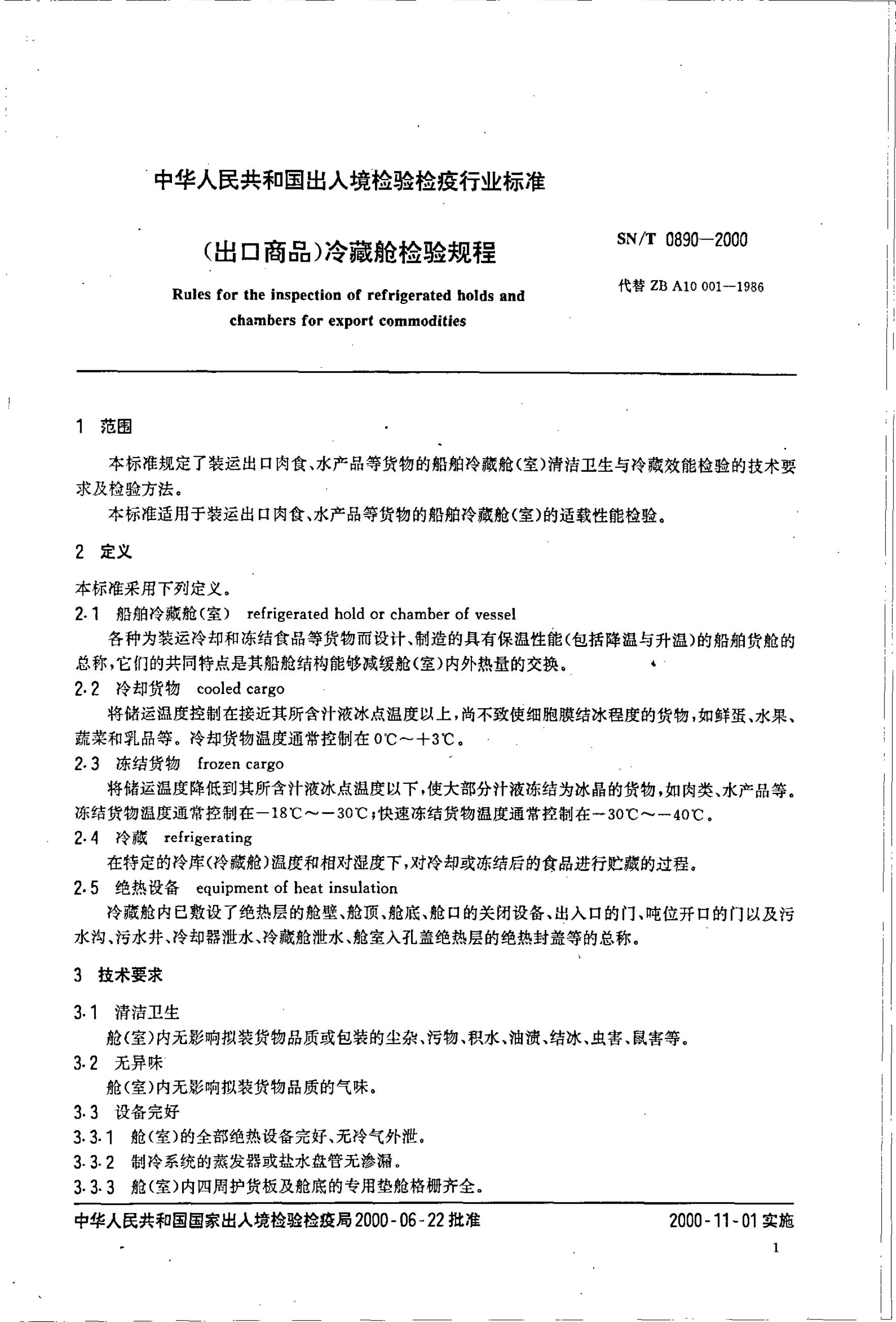 SN/T 0890-2000 (出口商品)冷藏舱检验规程