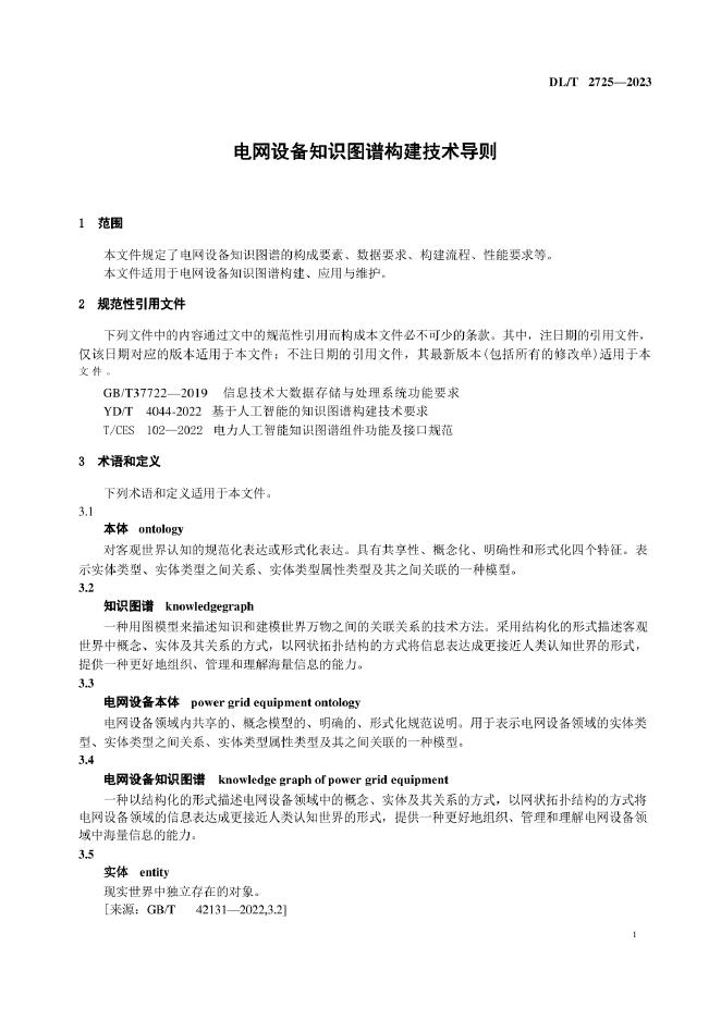 DL/T 2725-2023 电网设备知识图谱构建技术导则