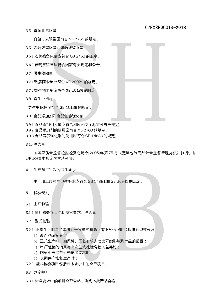 Q/FXSP 0001S-2018 熟制动物性水产制品