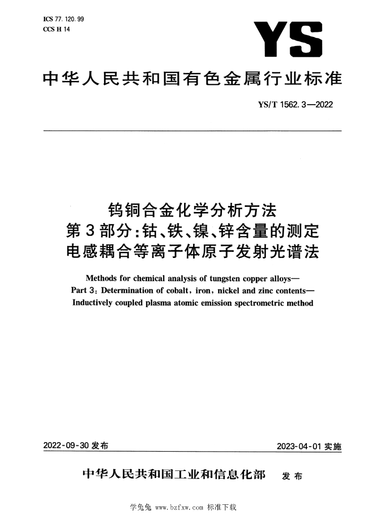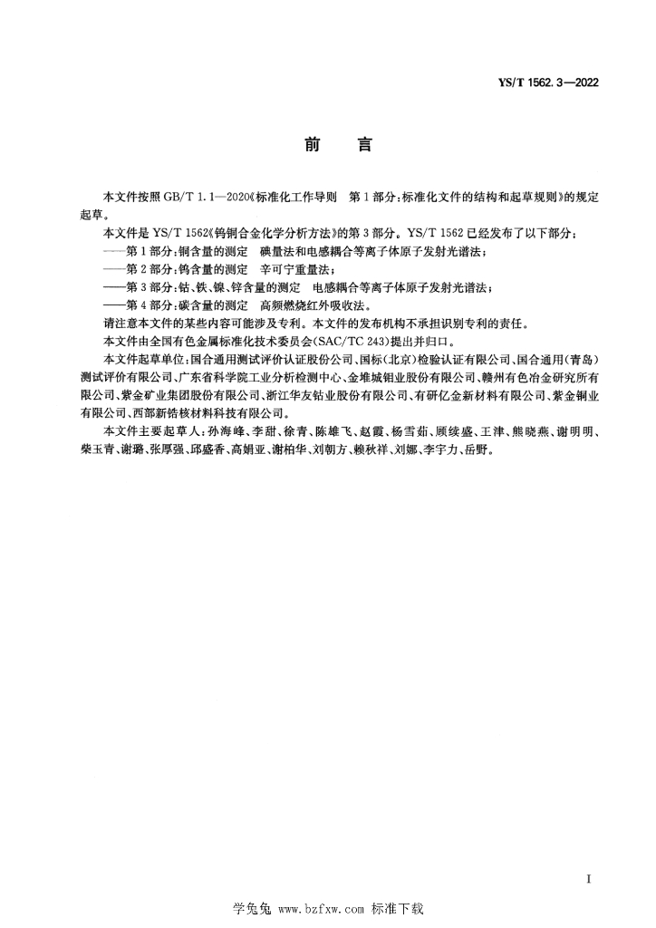 国合通用测试评价认证股份公司、国标(北京)检验认证有限公司、国合通用(青岛)测试评价有限公司、广东省科学院工业分析检测中心、金堆城钼业股份有限公司、赣州有色冶金研究所有限公司、紫金矿业集团股份有限公司、浙江华友钴业股份有限公司、有研亿金新材料有限公司、紫金铜业有限公司、西部新锆核材料科技有限公司