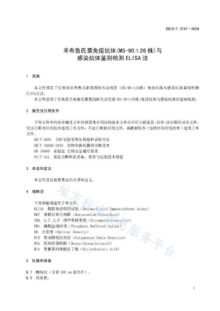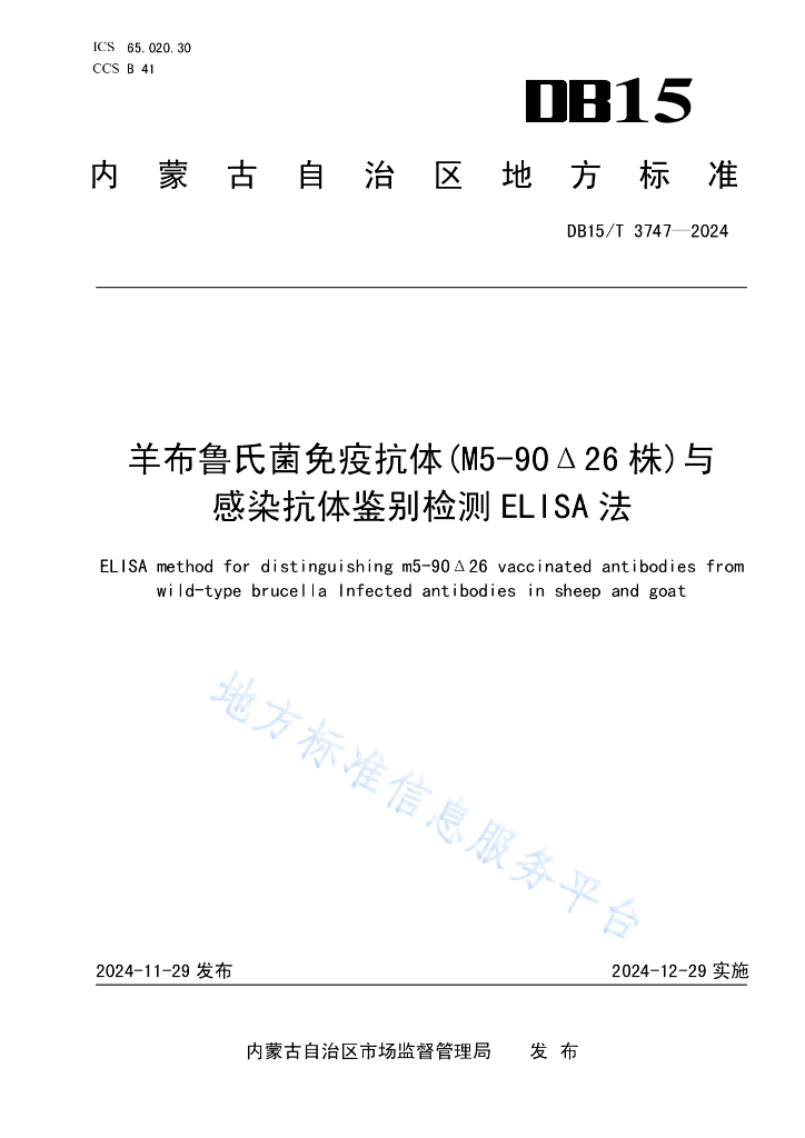 DB15/T 3747-2024 羊布鲁氏菌免疫抗体(M5-90Δ26株)与感染抗体鉴别检测ELISA法