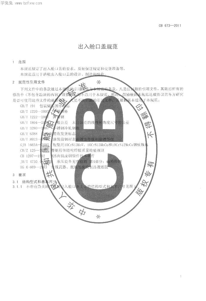 CB 673-2011 出入舱口盖规范