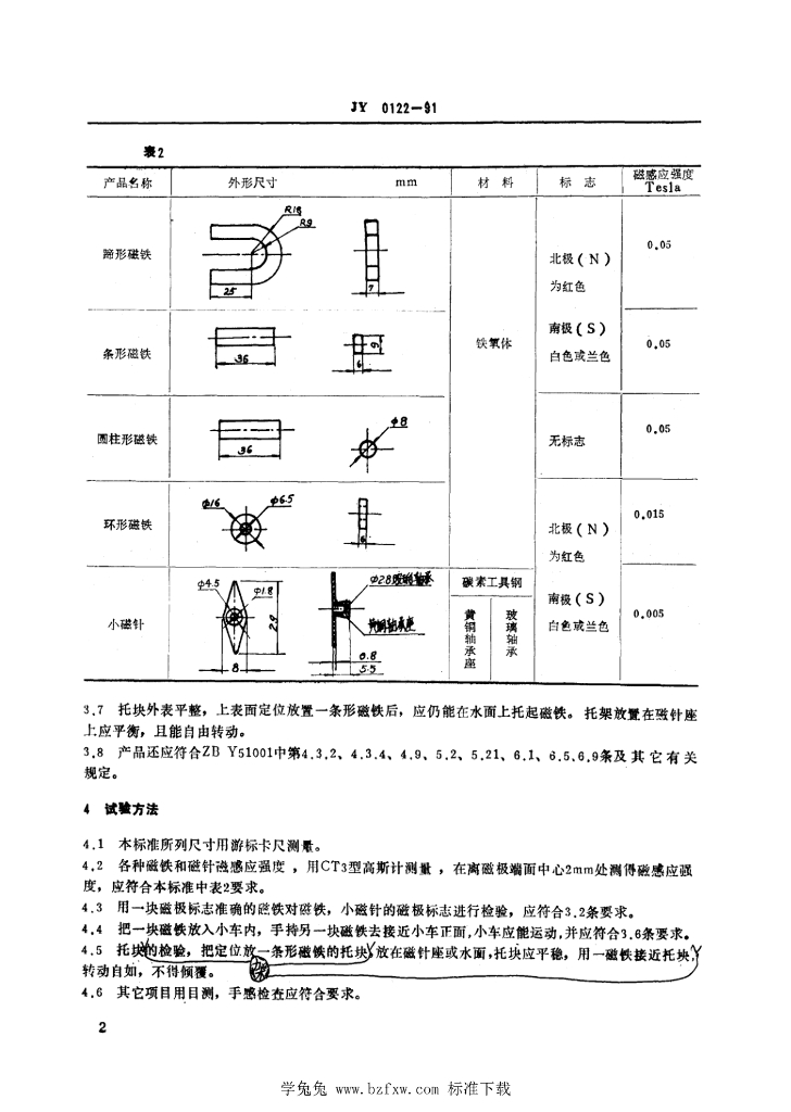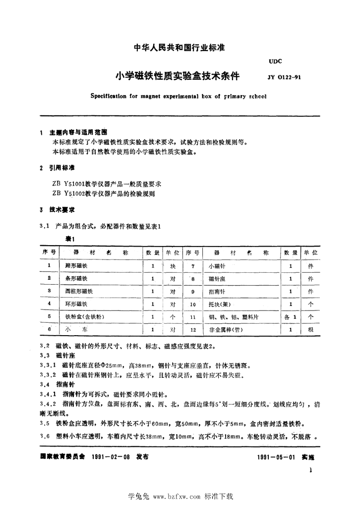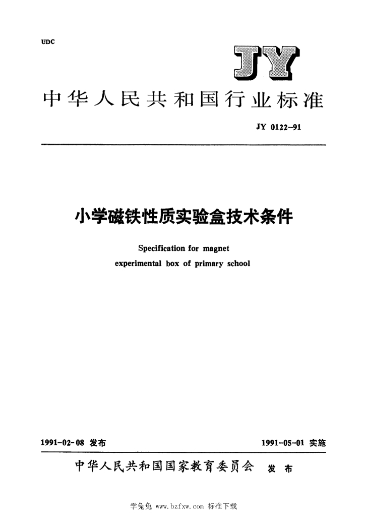 JY 0122-1991 小学磁铁性质实验盒技术条件
