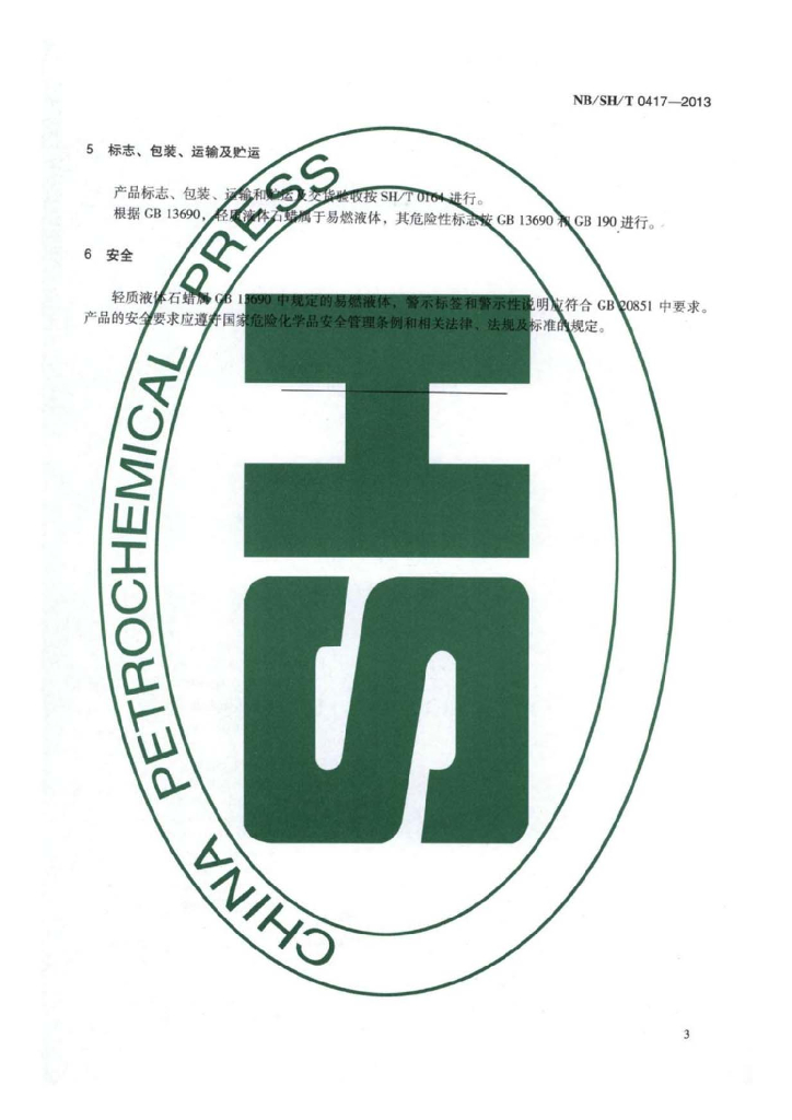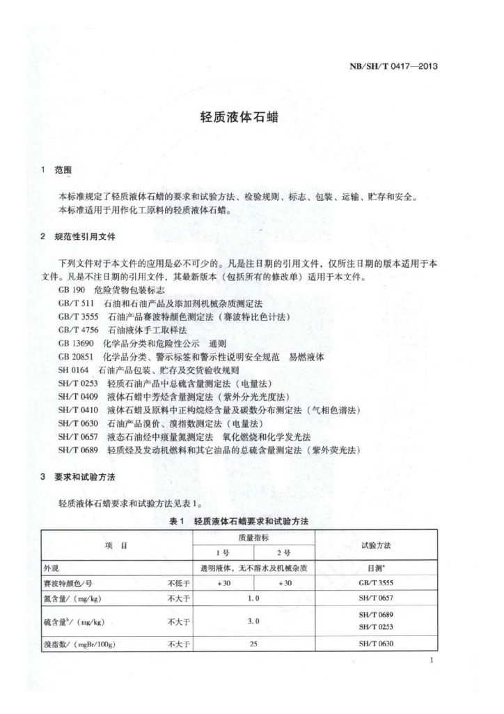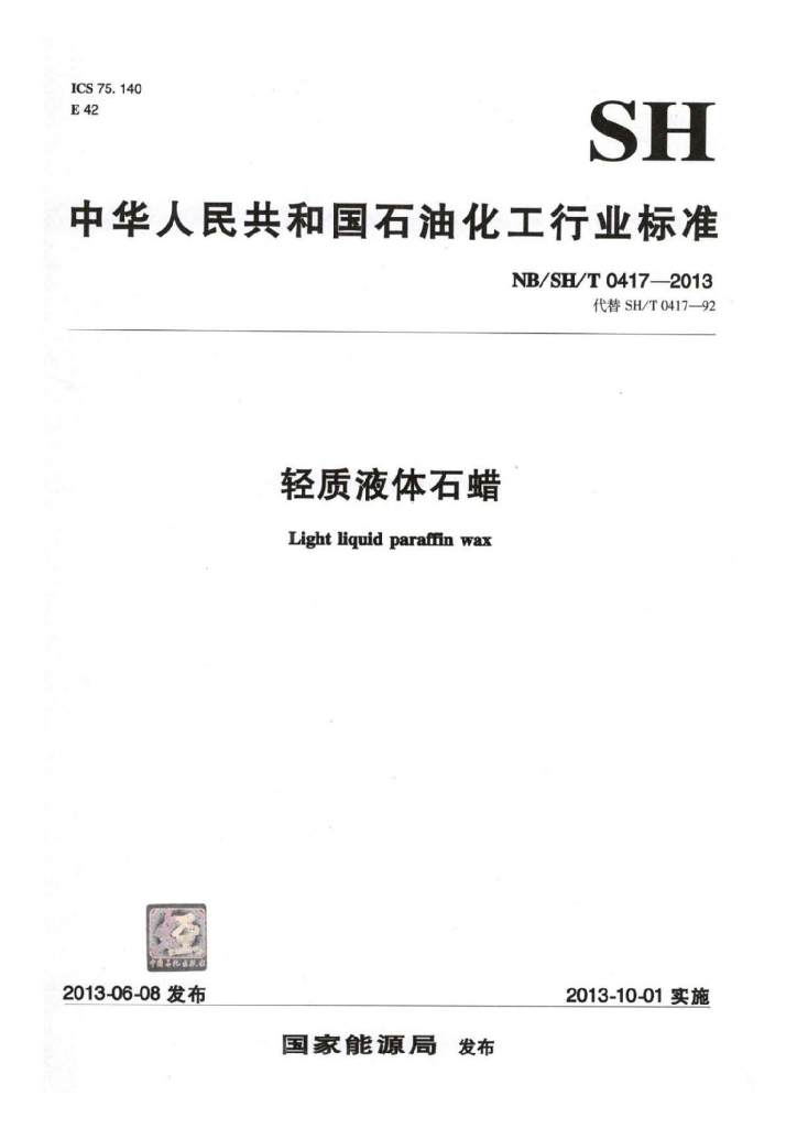 NB/SH/T 0417-2013 轻质液体石蜡