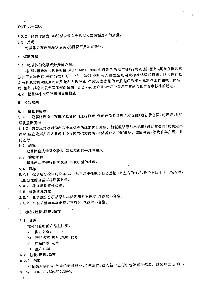 YS/T 83-2006 光谱分析用钯基体