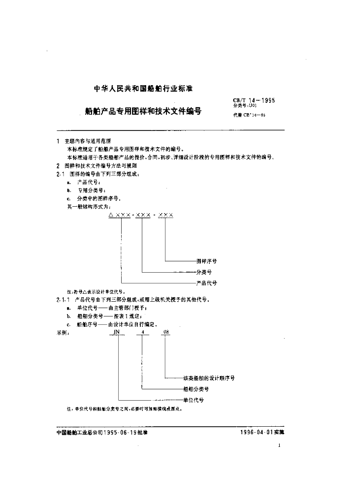 CB/T 14-1995 船舶产品专用图样和技术文件编号