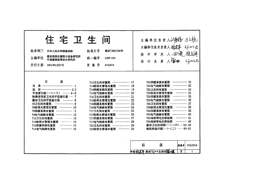 01SJ914 住宅卫生间图集