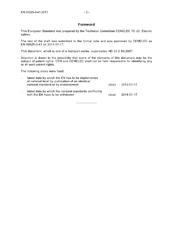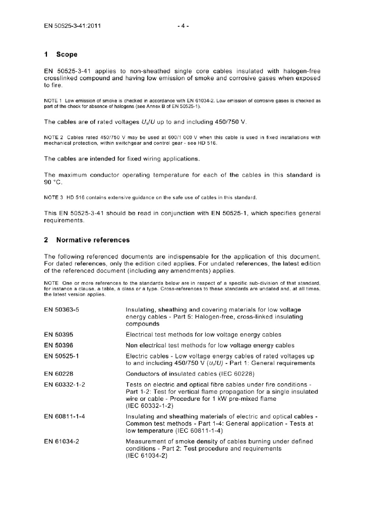 EN 50525-3-41:2011 额定电压450/750V及以下低压节能电缆 - 第3-41部分 具有特殊防火性能的电缆 - 具有低烟无卤交联绝缘的单芯无护套电缆
