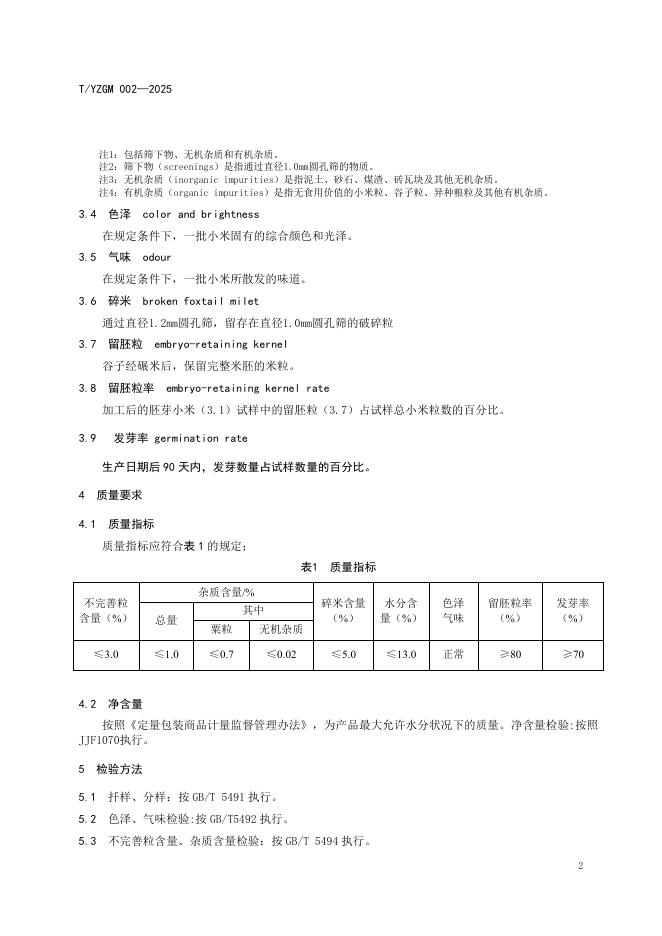 T/YZGM 002-2025 胚芽小米