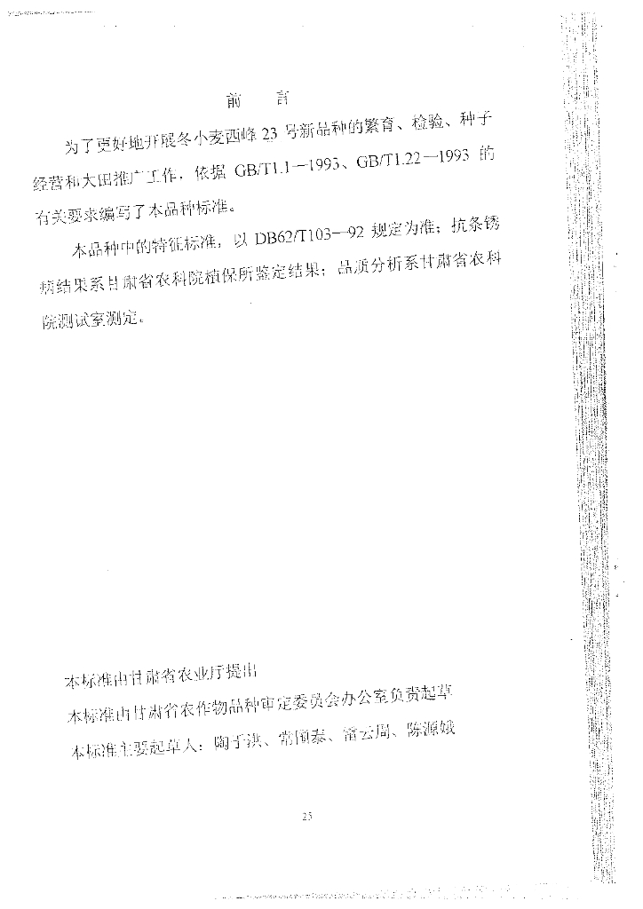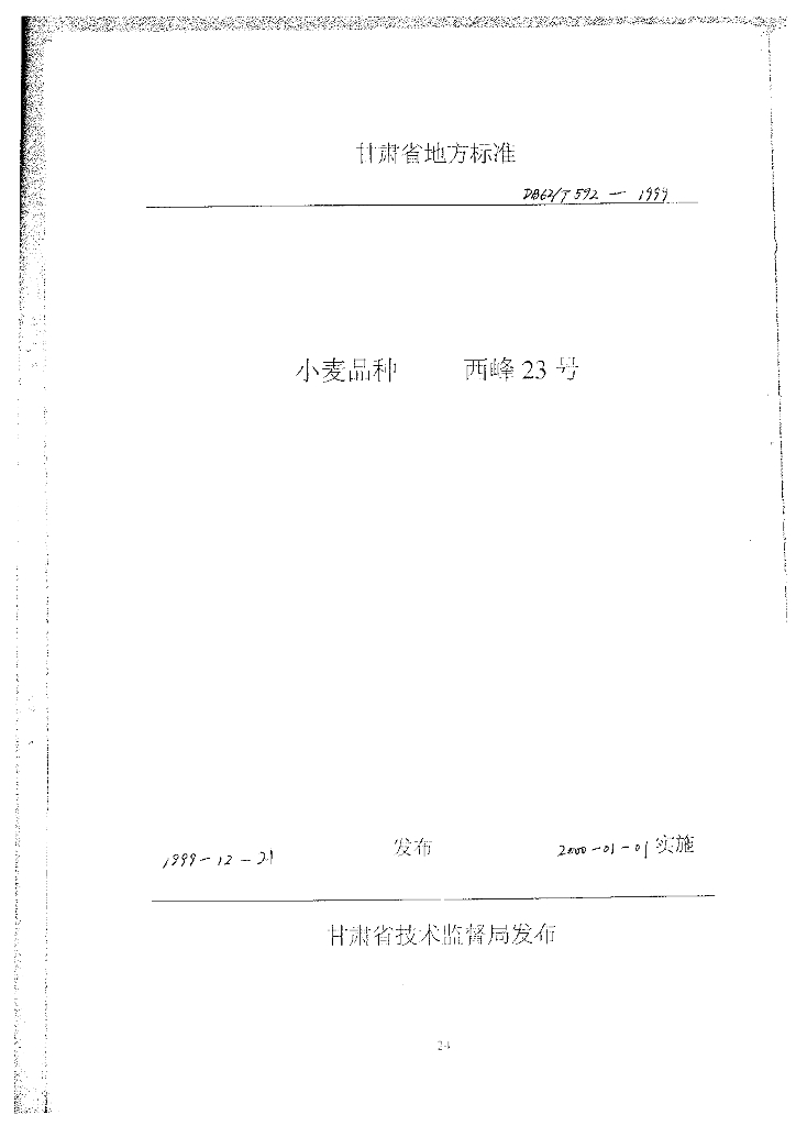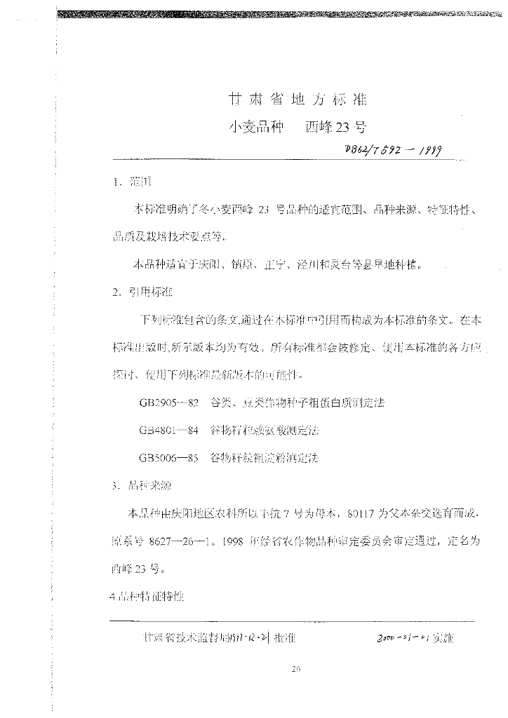 DB62/T 592-1999 小麦品种西峰23号