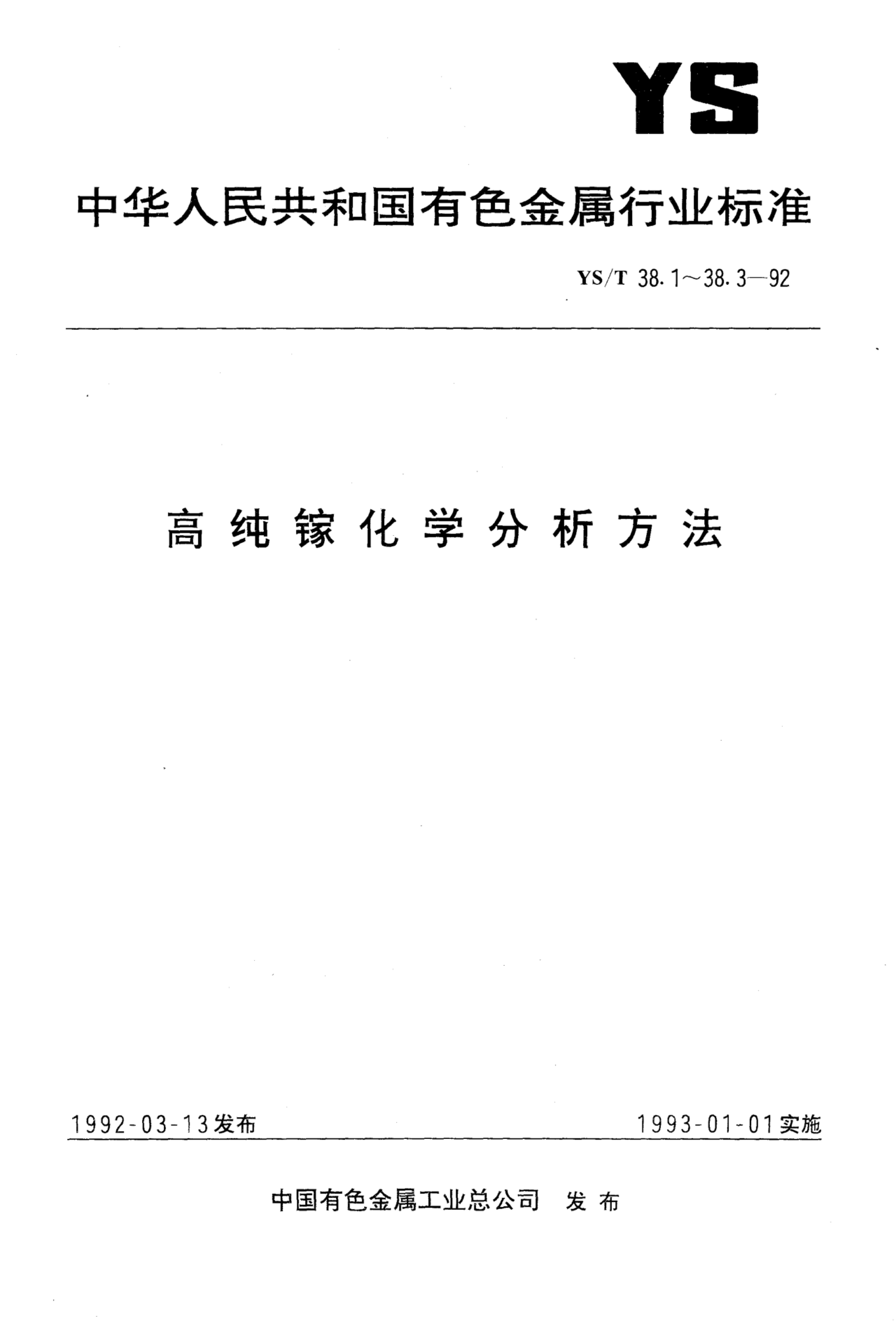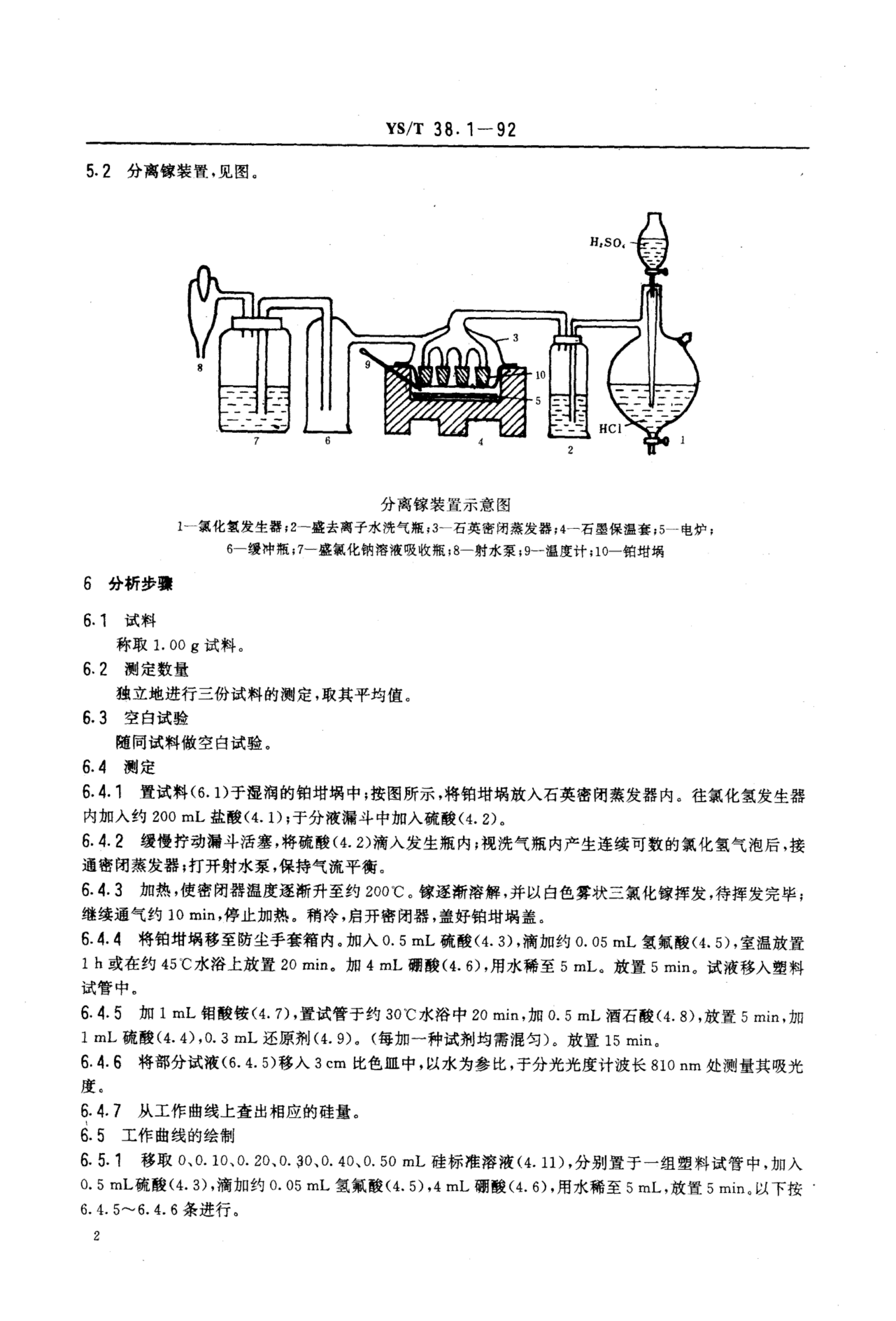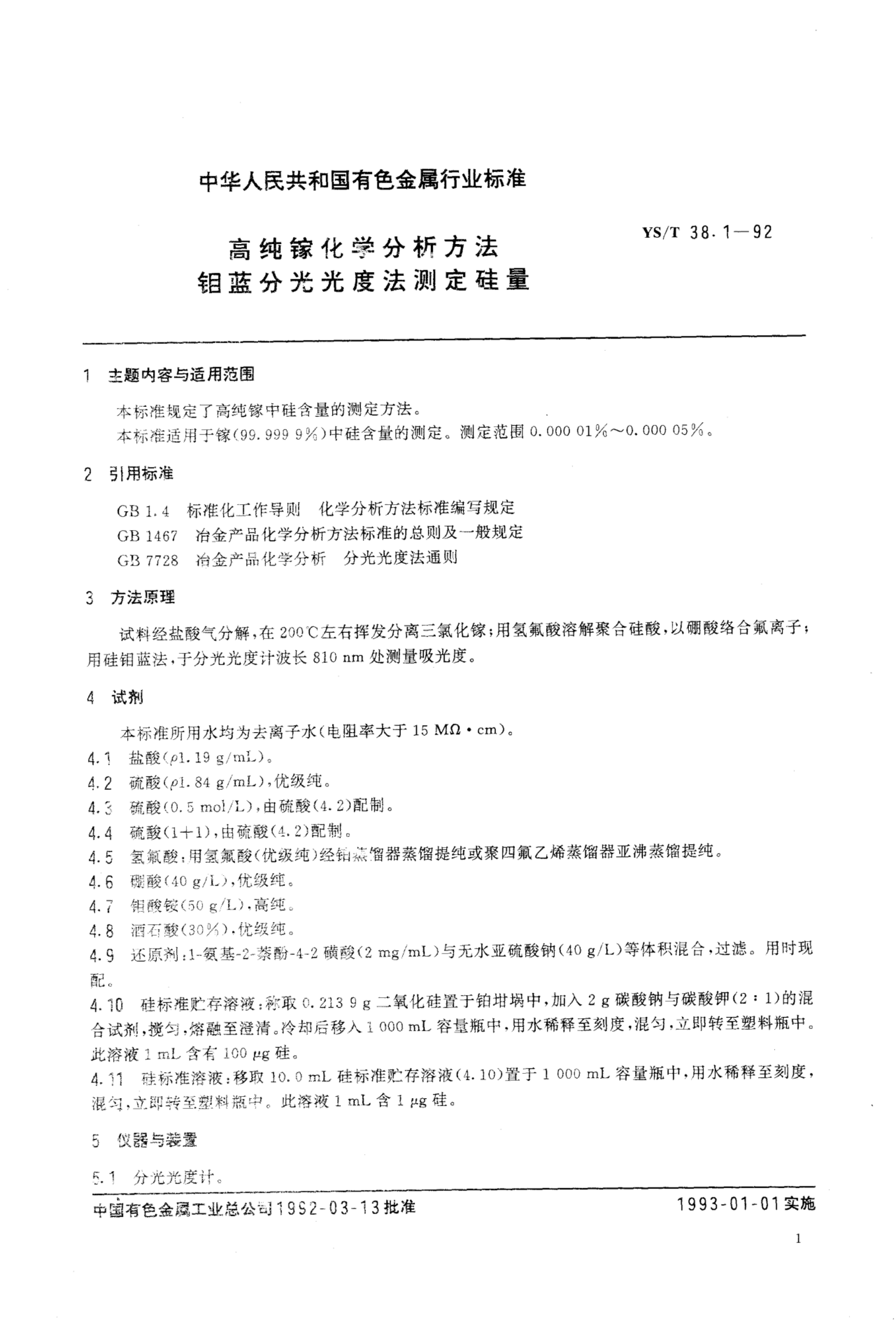 YS/T 38.1-1992 高纯镓化学分析方法钼蓝分光光度法测定硅量