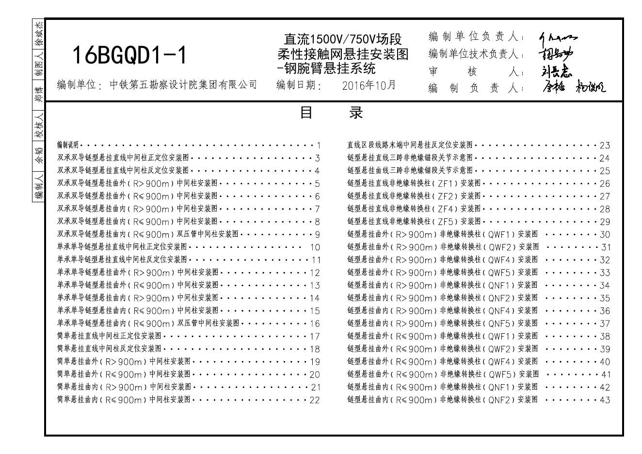 16BGQD1-1 直流1500V750V场段柔性接触网悬挂安装图-钢腕臂悬挂系统(北京市轨道交通通用图集)