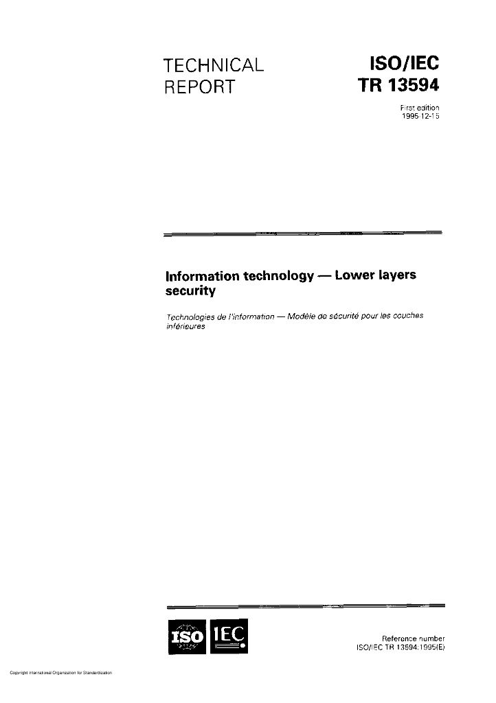 ISO/IEC TR 13594-1995 信息技术 低层安全