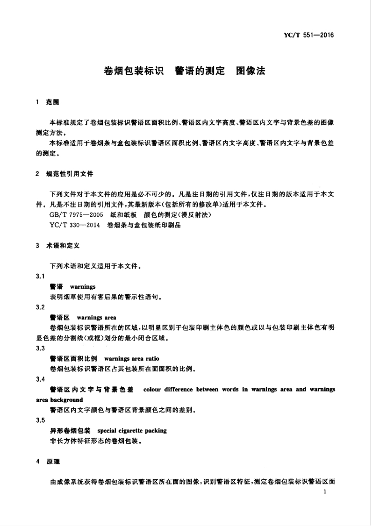 YC/T 551-2016 卷烟包装标识 警语的测定 图像