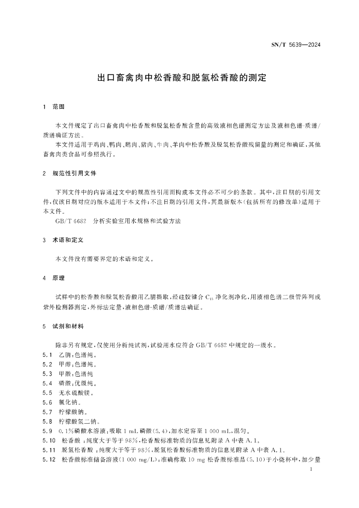 SN/T 5639-2024 出口畜禽肉中松香酸和脱氢松香酸的测定