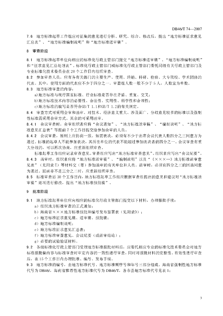 DB46/T 74-2007 标准化管理规范 地方标准制定工作程序