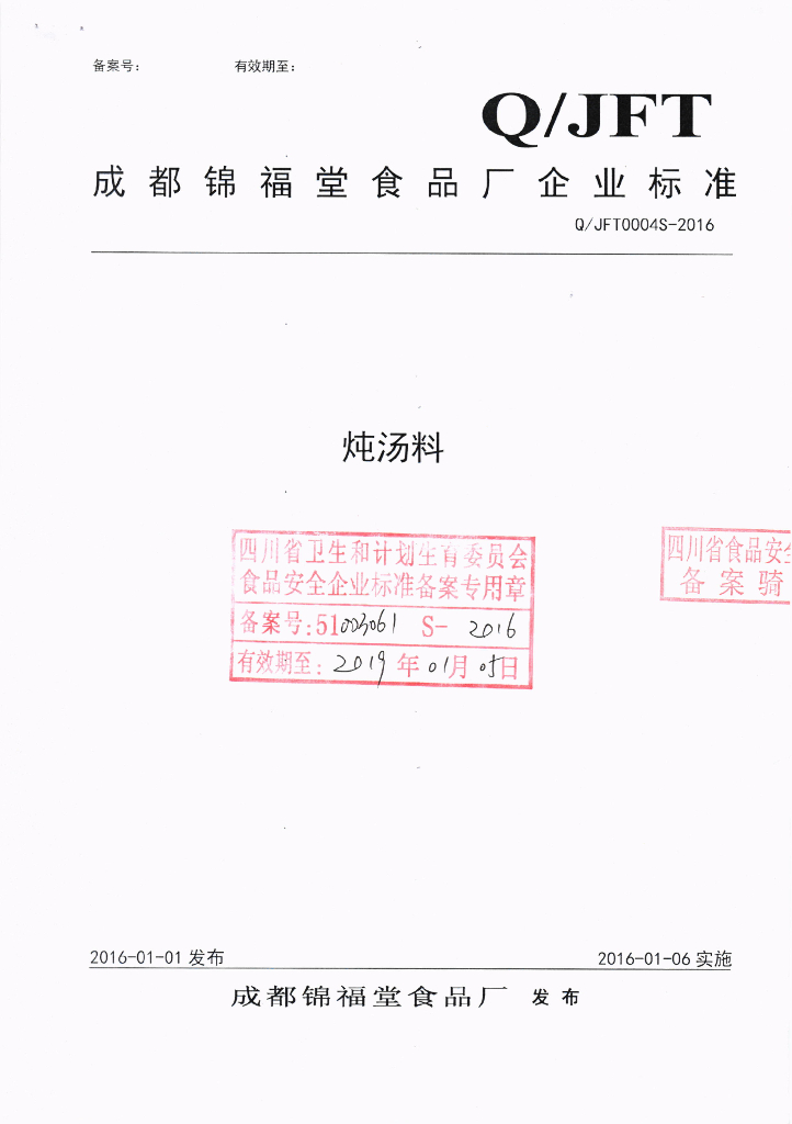 Q/JFT 0004S-2016 成都锦福堂食品厂 炖汤料