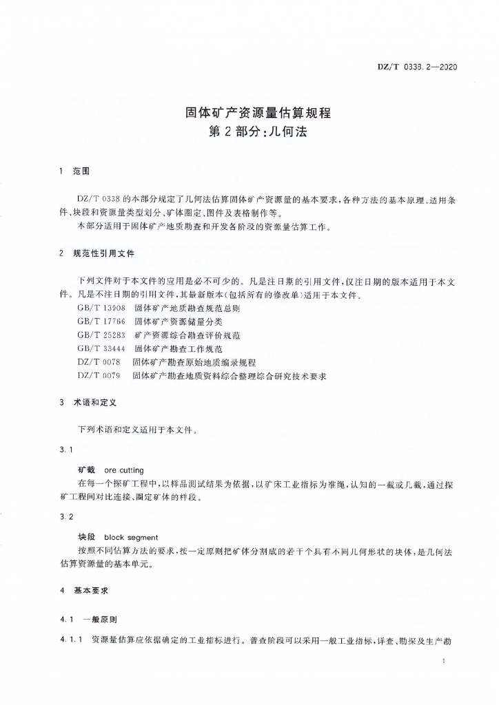 DZ/T 0338.2-2020 固体矿产资源量估算规程 第2部分:几何法