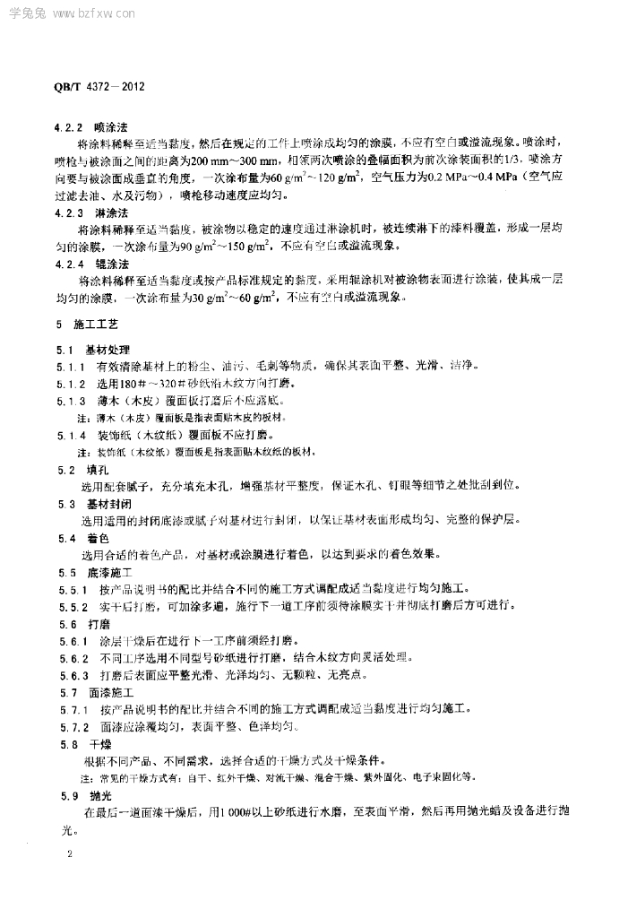 QB/T 4372-2012 家具表面涂覆溶剂型木器涂料施工技术规范