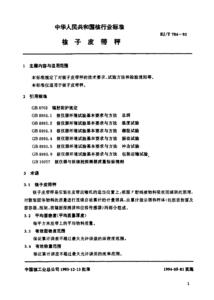 EJ/T 784-1993 核子皮带秤