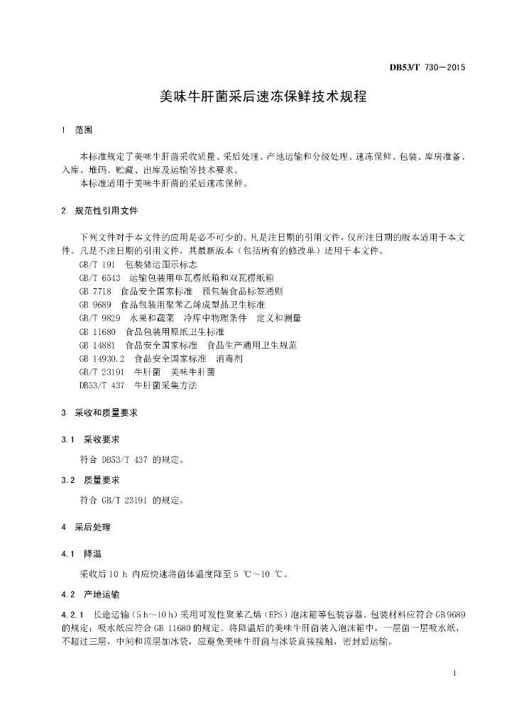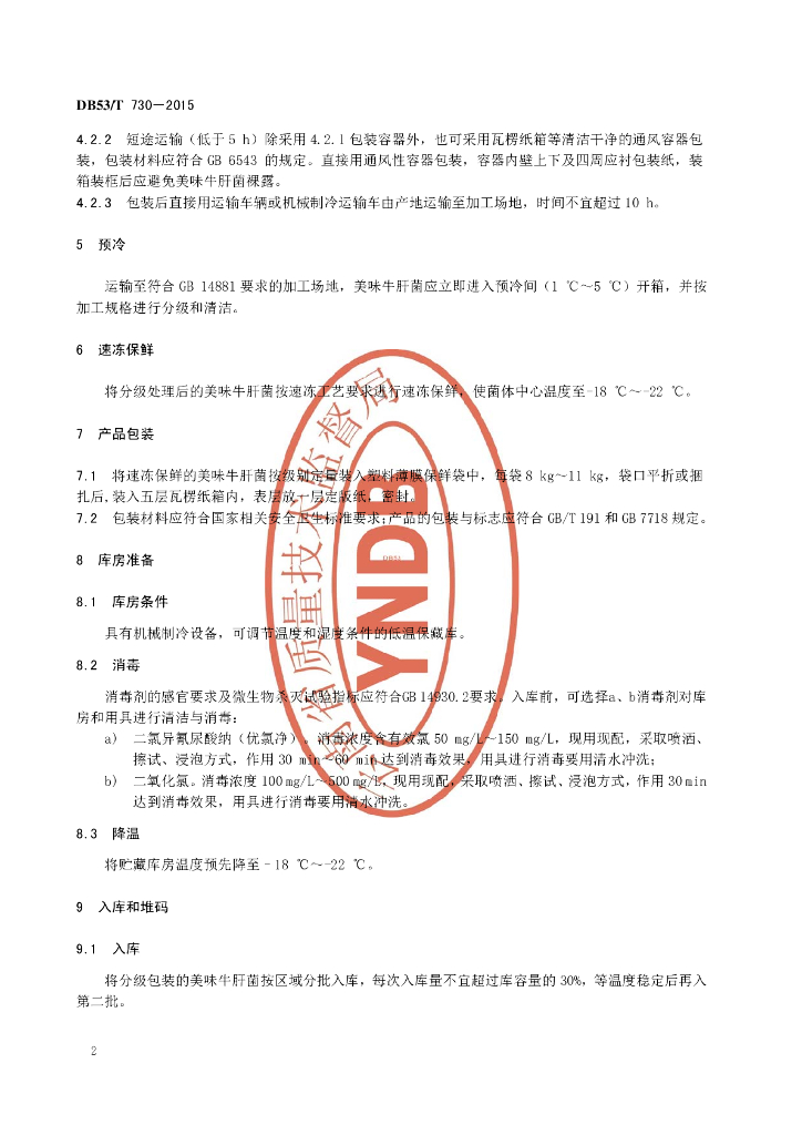 DB53/T 730-2015 美味牛肝菌采后速冻保鲜技术规程