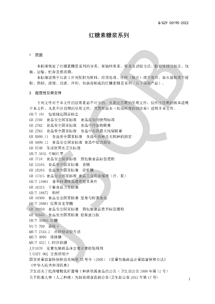 Q/GZY 0019S-2022 红糖素糖浆系列
