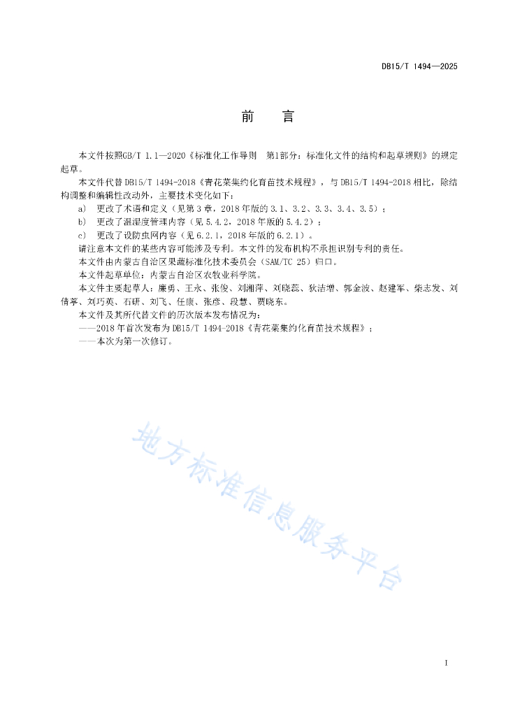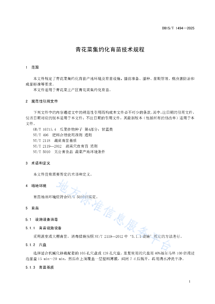 DB15/T 1494-2025 青花菜集约化育苗技术规程