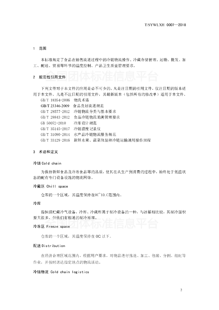 T/SYWLXH 0007-2018 食品冷链物流技术管理规范