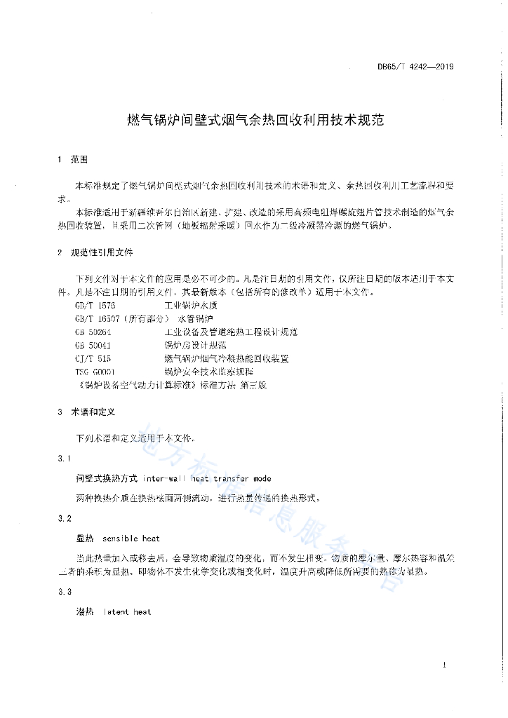 DB65/T 4242-2019 燃气锅炉间壁式烟气余热回收利用技术规范