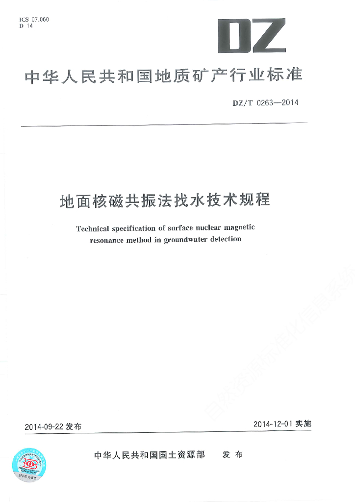 DZ/T 0263-2014 地面核磁共振法找水技术规程
