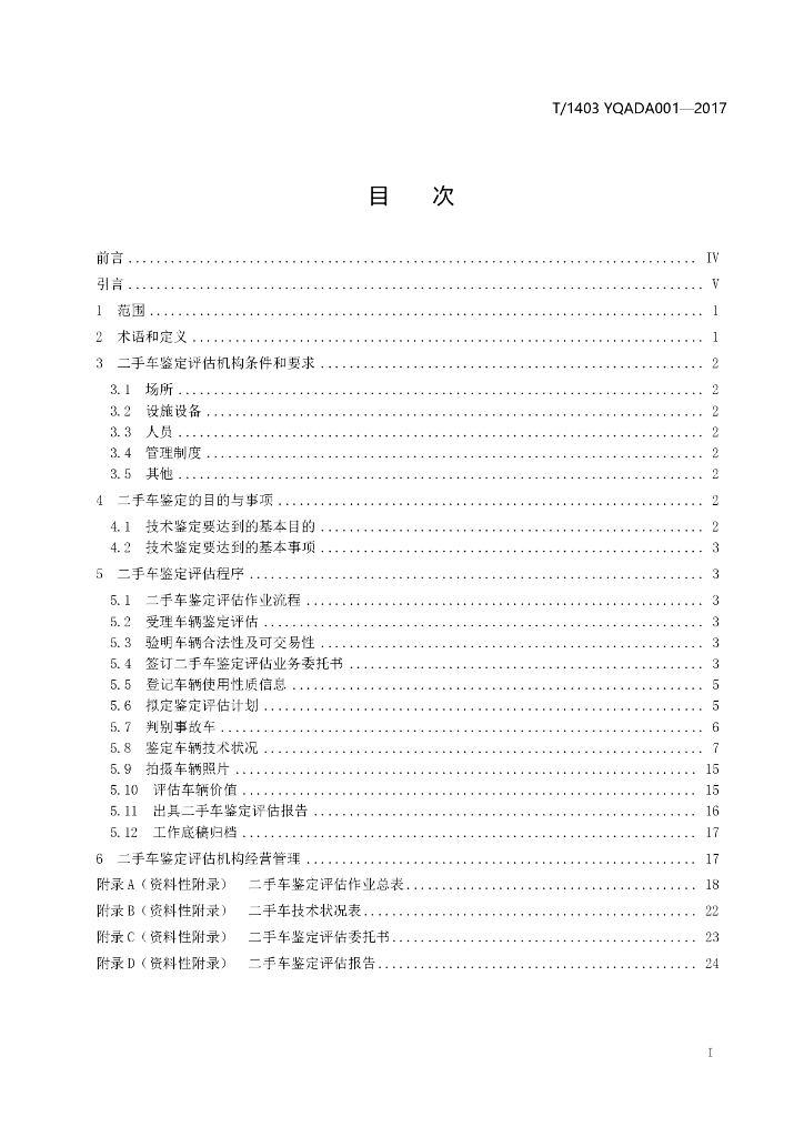 T/1403 YQADA001-2017 二手车鉴定评估操作技术规范