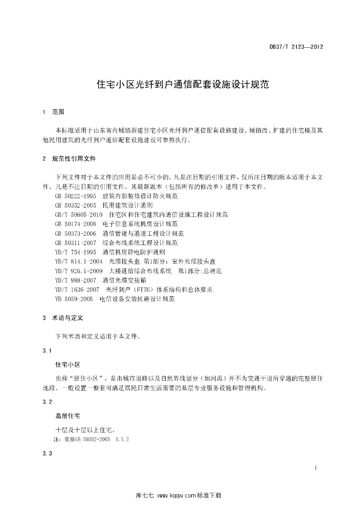 DB37/T 2123-2012 住宅小区光纤到户通信配套设施设计规范
