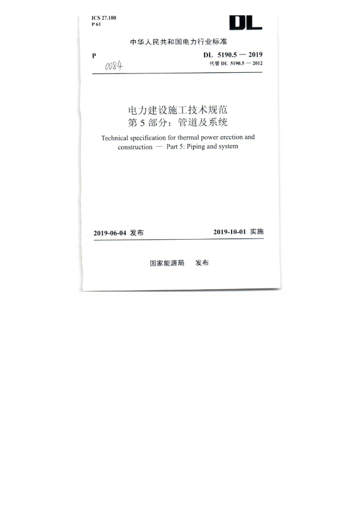 DL 5190.5-2019 电力建设施工技术规范 第5部分:管道及系统