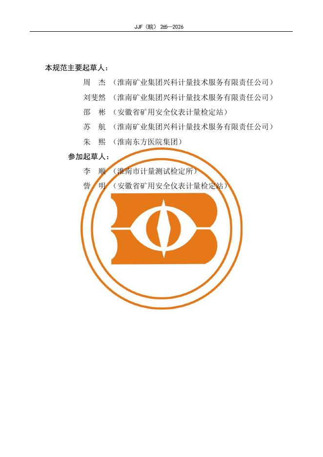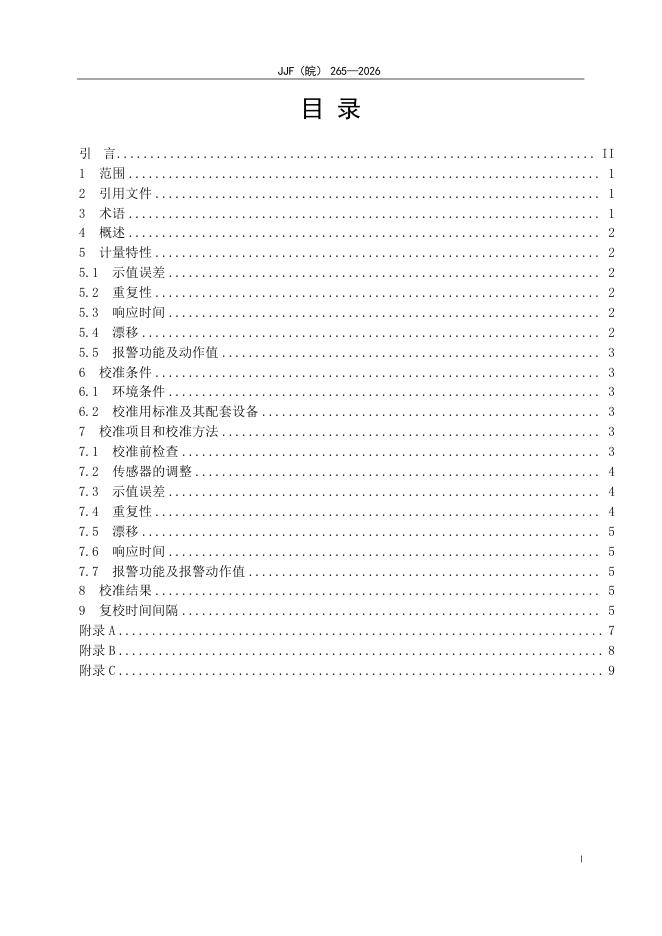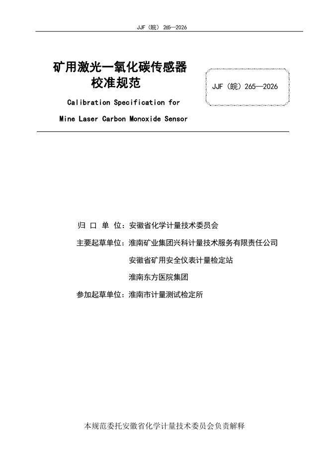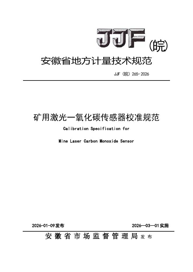 JJF(皖)265-2026 矿用激光一氧化碳传感器校准规范