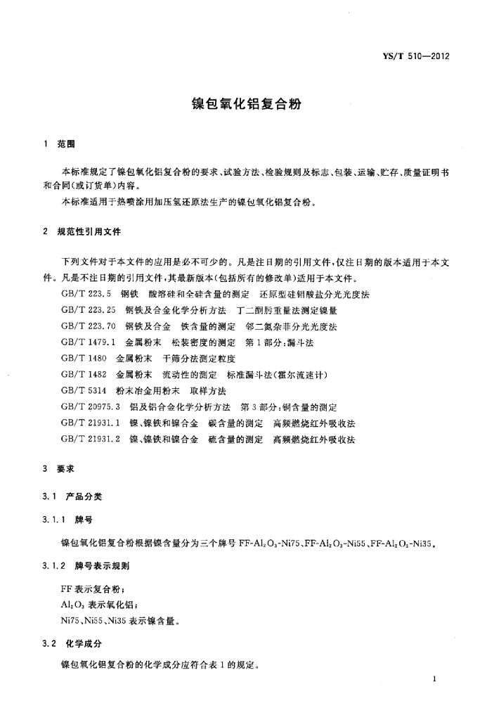 YS/T 510-2012 镍包氧化铝复合粉