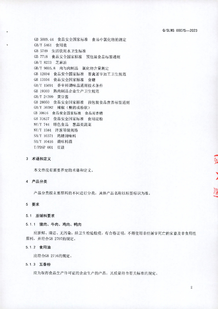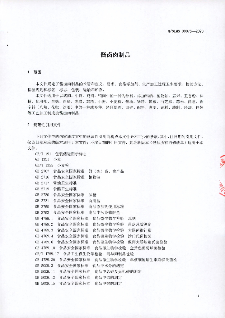 Q/SLWS 0001S-2023 酱卤肉制品