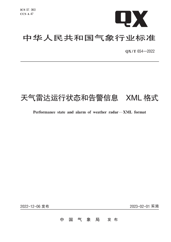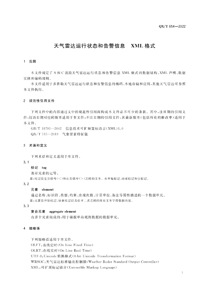 QX/T 654-2022 天气雷达运行状态和告警信息 XML格式