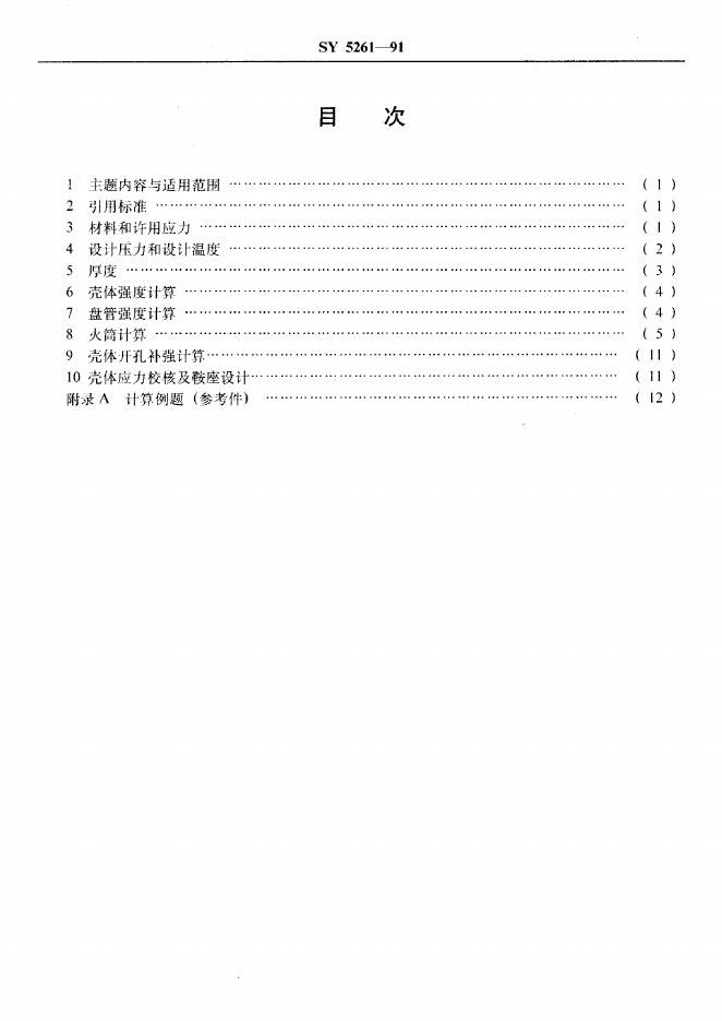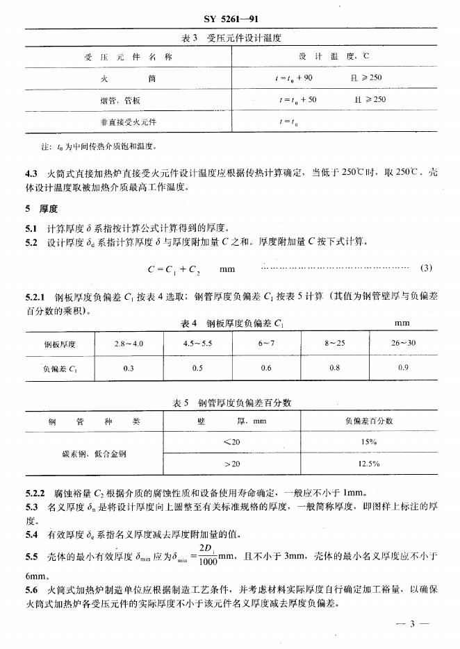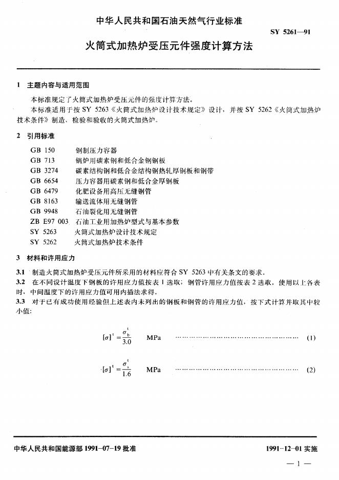 SY 5261-1991 火筒式加热炉受压元件强度计算方法