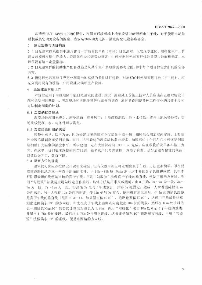 DB65/T 2847-2008 南疆地区节能日光温室(全钢骨架)建造规程
