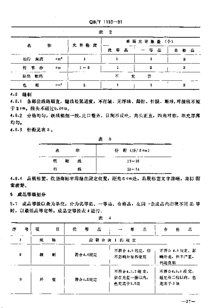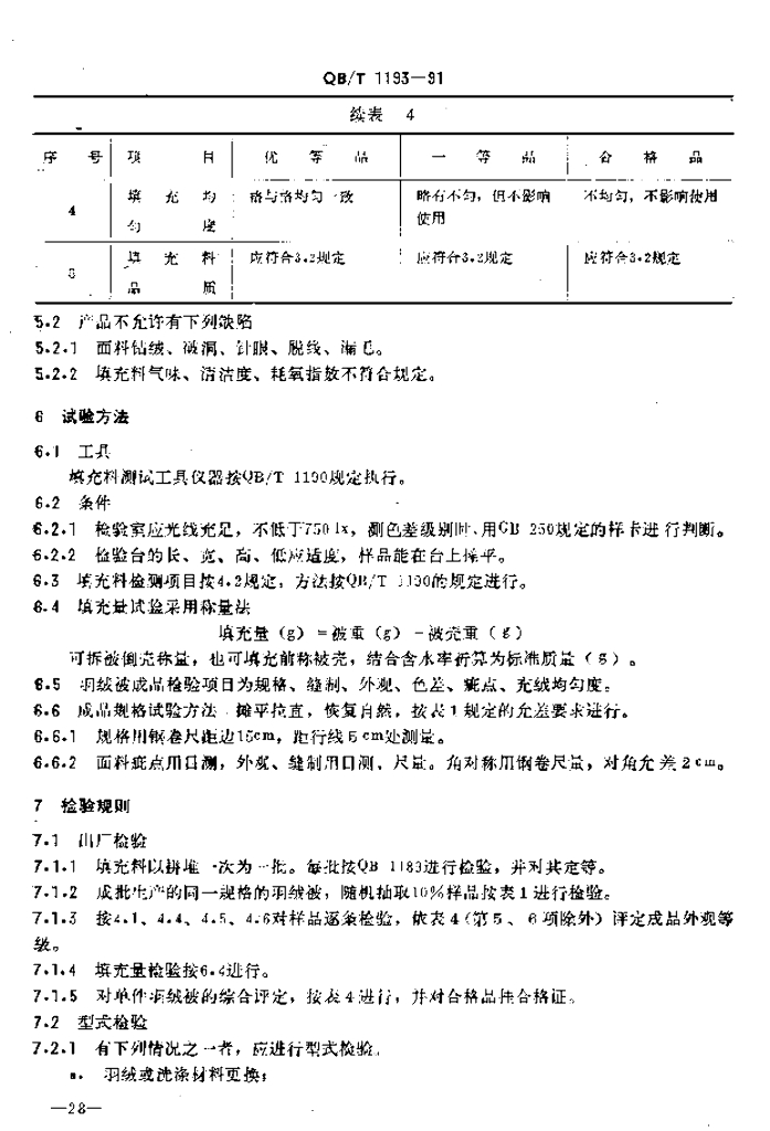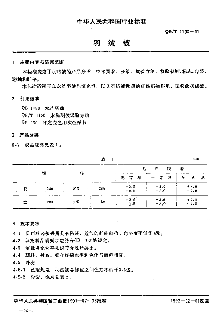 QB/T 1193-1991 羽绒被