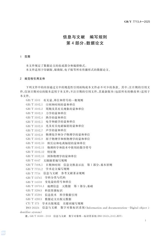 GB/T 7713.4-2025 信息与文献 编写规则 第4部分:数据论文